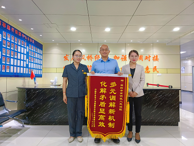 近日,当事人中国平安财产保险股份有限公司贵州分公司相关负责人一行专程到贵阳市南明区人民法院民商事案件调解中心(下称:调解中心),向本所驻调解中心的调解员周孟菊律师送上一面印有“多元调解新机制 化解矛盾显高效”的锦旗,对该中心高效化解矛盾、为企业排忧解难表达感激之情。