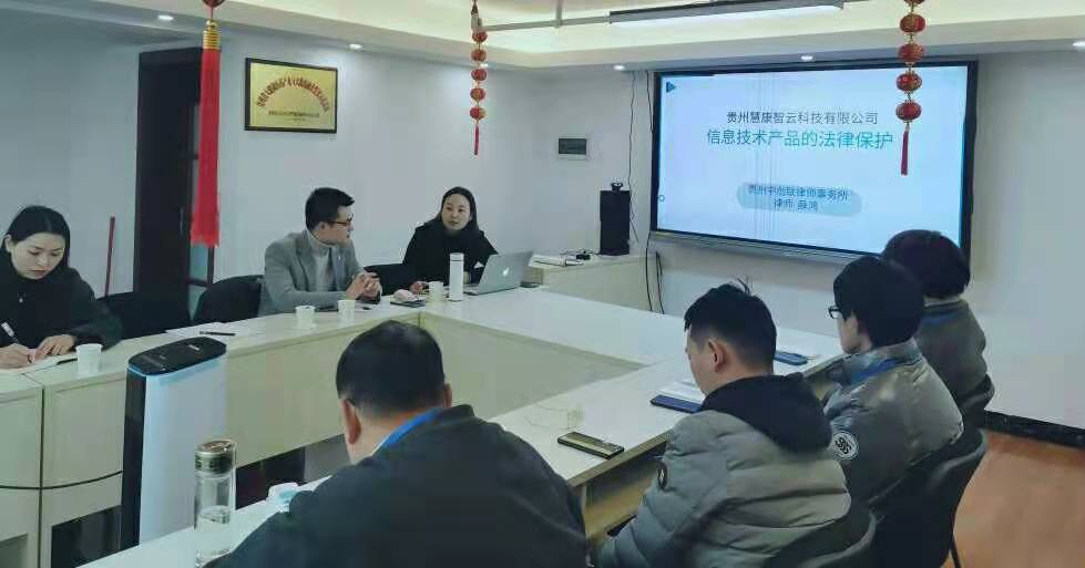 2021年12月17日上午10时,我所互联网与信息技术法律事务部薛鸿部长、李彦霖副部长一行4人到法律顾问单位“贵州慧康智云科技有限公司”(以下简称“慧康智云公司”)开展法律讲座。